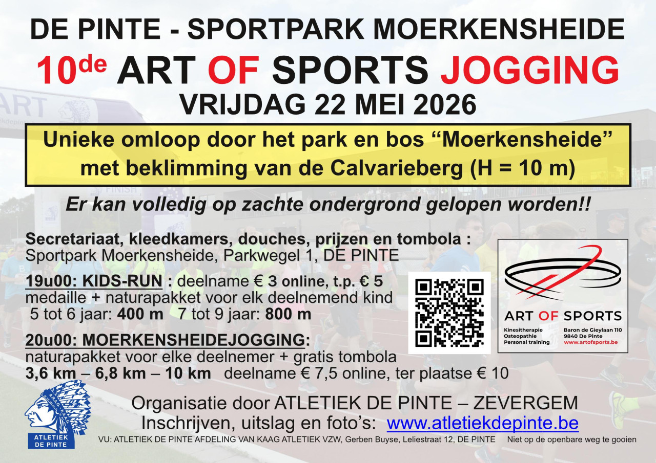 Op vrijdag 22 mei vindt de 10e editie van de Art of Sport jogging plaats in en rond sportparkt Moerkensheide.